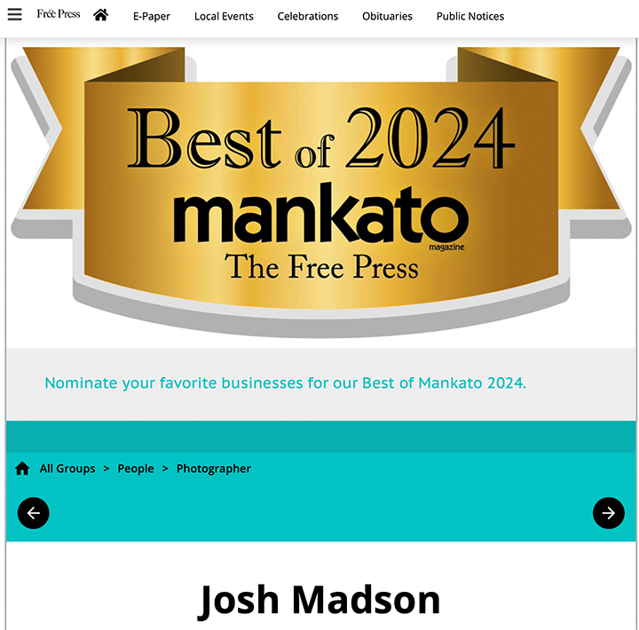 a fun shoot for all members of the community to be included in Mankato's 2024 collage. The shoot will take place on May 22 from 2p until 6p at the Early Education Center located at 15 Map Dr in Mankato. All are welcome. See calendar section for location and reservation details.